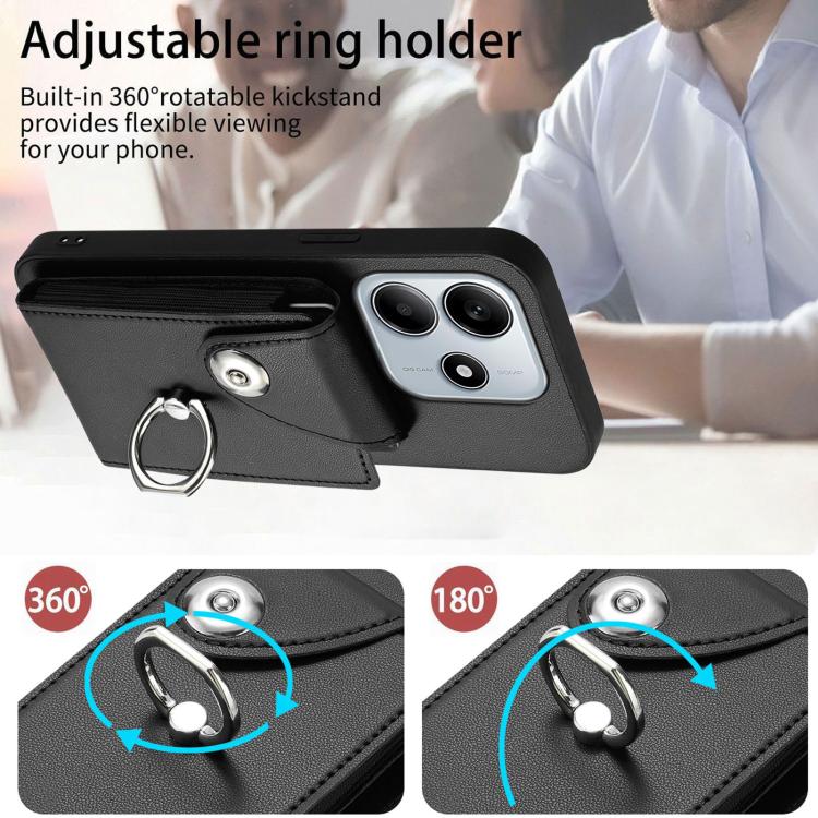 Funda para Redmi Note 14 5G con tarjetero y anillo (negro)