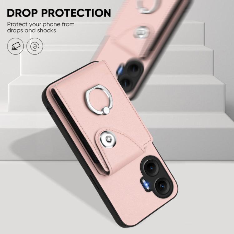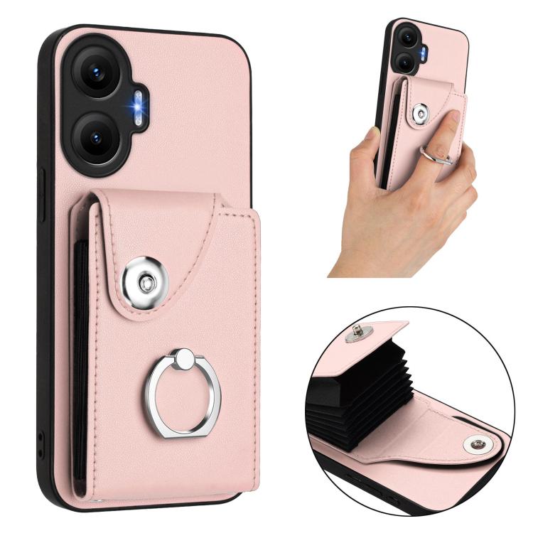 Funda para Redmi Turbo 4 Pro / Poco F7 con tarjetero y anilla, con cordón largo (rosa)