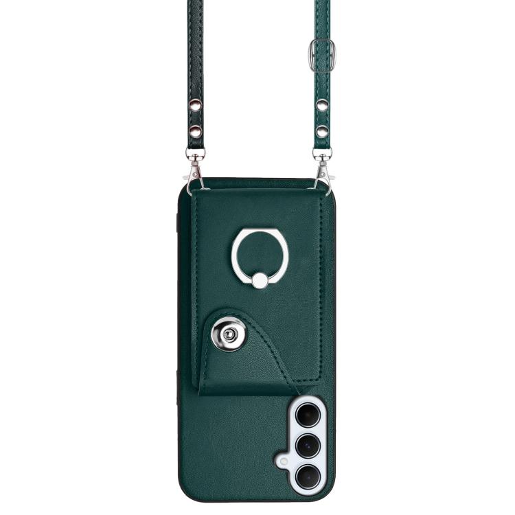 Funda para Samsung Galaxy A26 5G con tarjetero, anilla y cordón largo (verde)