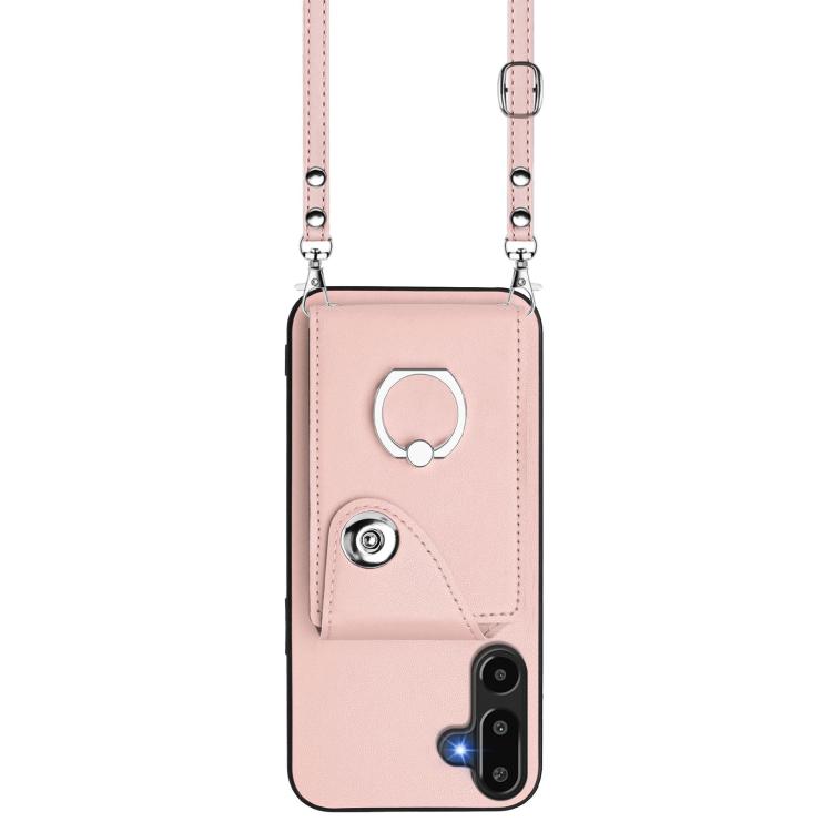 Funda para Samsung Galaxy M16 5G / F16 5G con tarjetero, anilla y cordón largo (rosa)