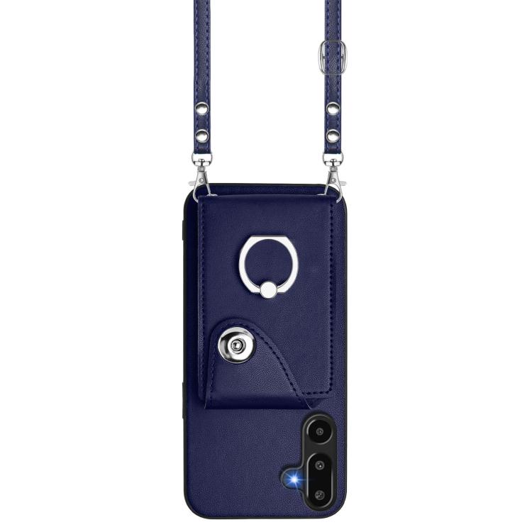 Funda para Samsung Galaxy M16 5G / F16 5G con tarjetero y anilla, con cordón largo (azul)