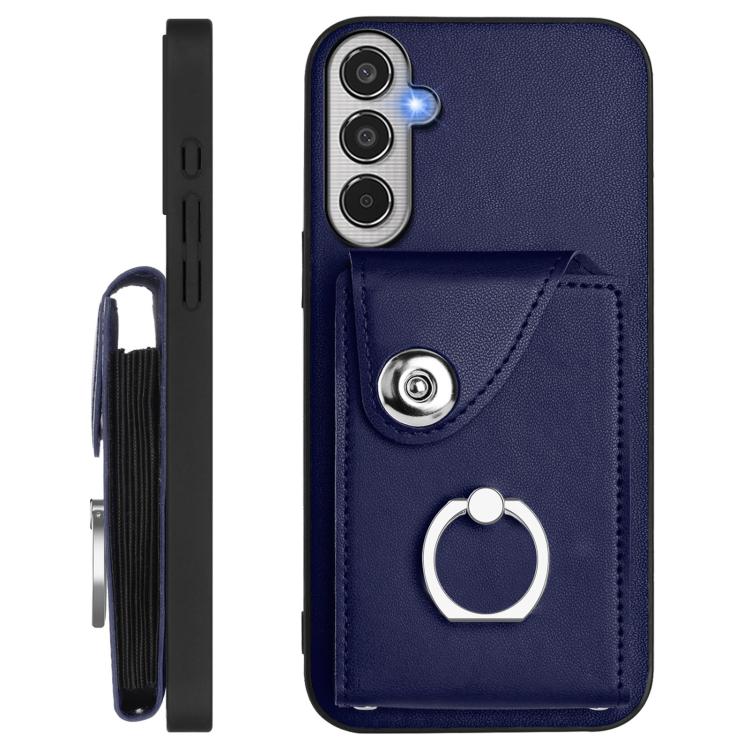 Funda para Samsung Galaxy M35 5G con tarjetero, anillo y cordón largo (azul)