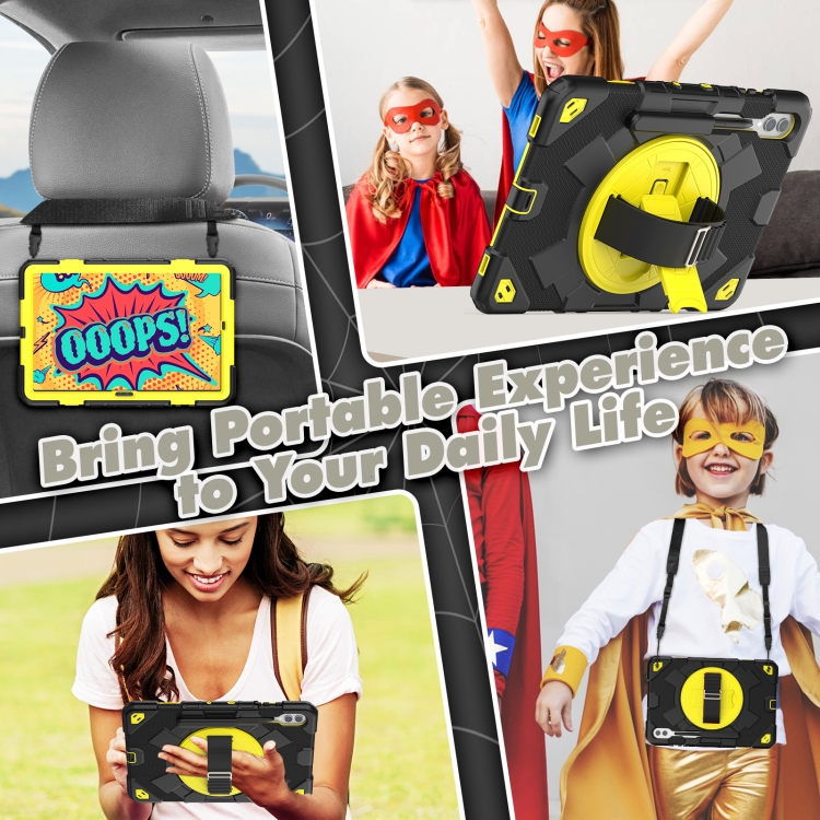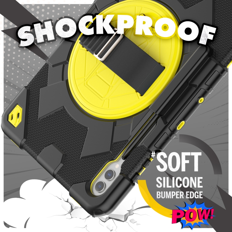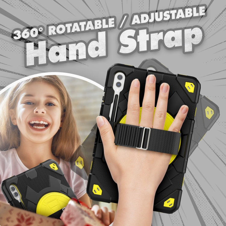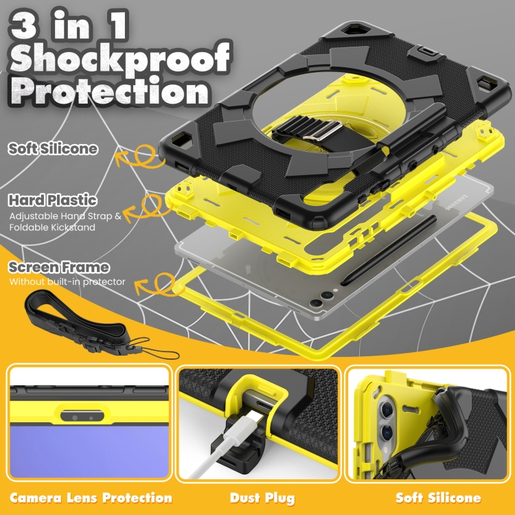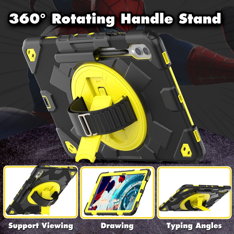 Funda para Tablet Spider con Soporte Giratorio y Agarre Manual para Samsung Galaxy Tab S10+ / S9+ / S9 Fe+ (Negra y Amarilla)
