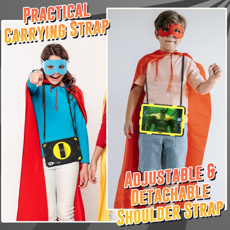 6. Correa de hombro desmontable: La correa de mano ajustable proporciona un agarre fácil y cómodo, una característica imprescindible cuando presentas tu tableta a otras personas.La correa de hombro desmontable y ajustable puede ayudarte a llevar tu tableta de forma más segura mientras haces senderismo, viajas y otras actividades al aire libre.Esto también se puede utilizar para asegurar tu tableta al asiento del coche.