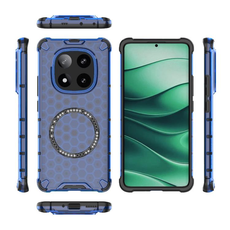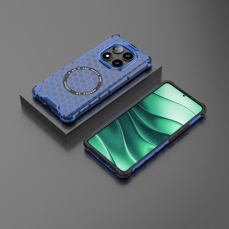 Funda para Teléfono a Prueba de Golpes con Anillo Magnético de Panal para Redmi Note 14 Pro 5G (Azul)