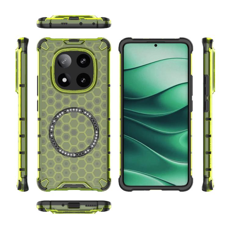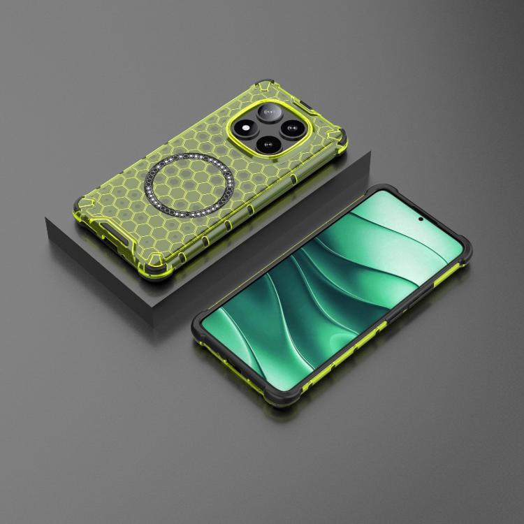 Funda para Teléfono a Prueba de Golpes con Anillo Magnético de Panal para Redmi Note 14 Pro 5G (Verde)