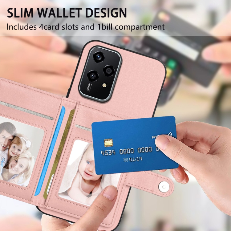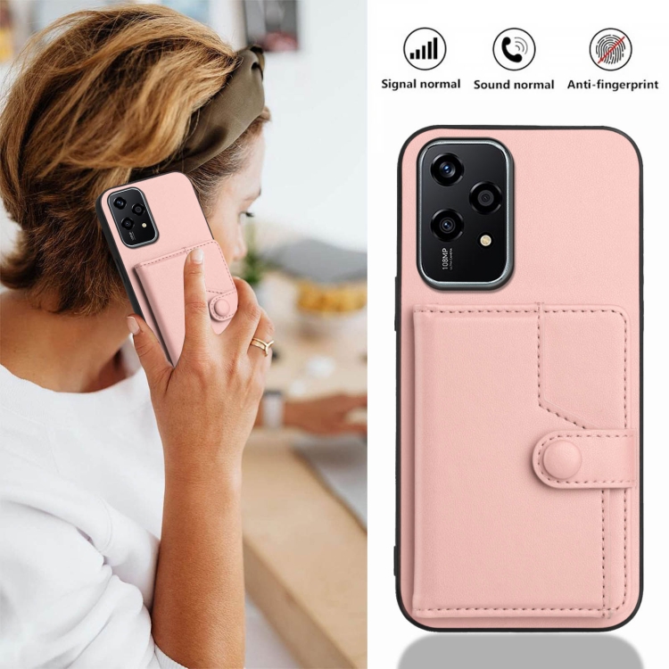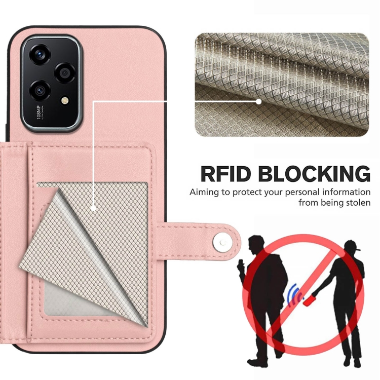 Funda Antirrobo para Honor 200 Lite 5G con Botón y Tarjetero Rfid (Rosa)