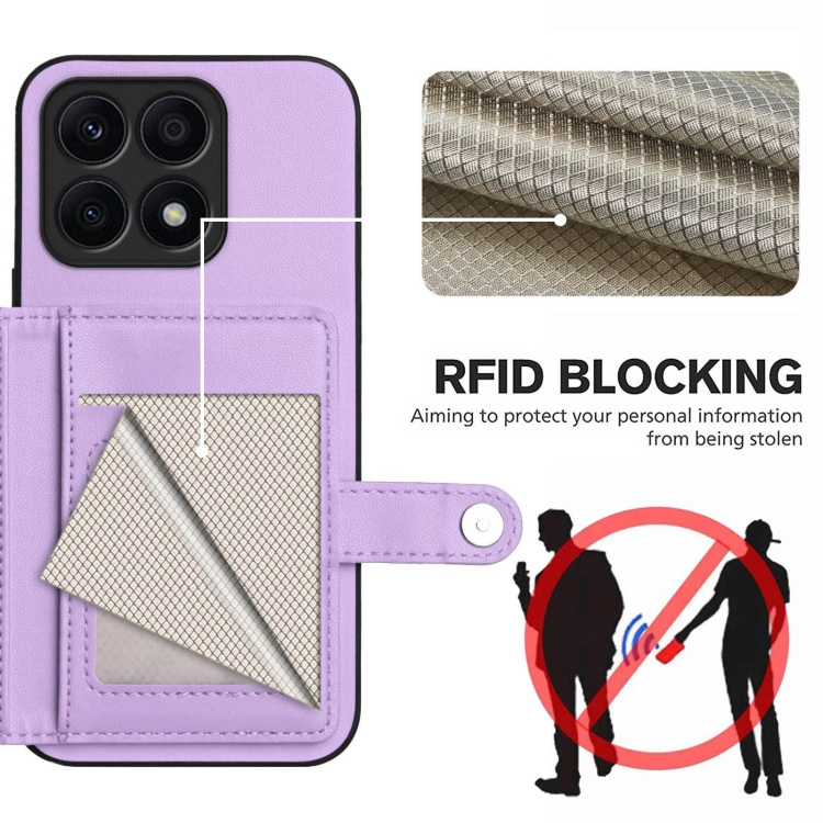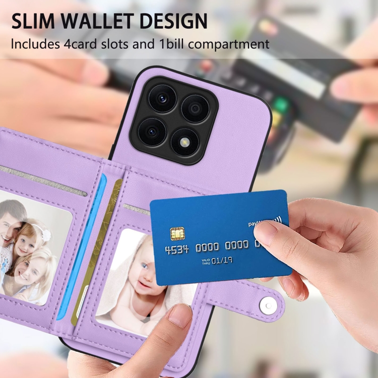 Funda Antirrobo para Honor X8A con Botón y Tarjetero RFID (Morado)
