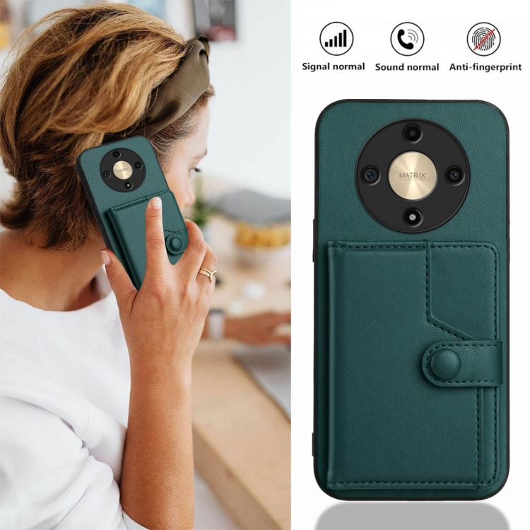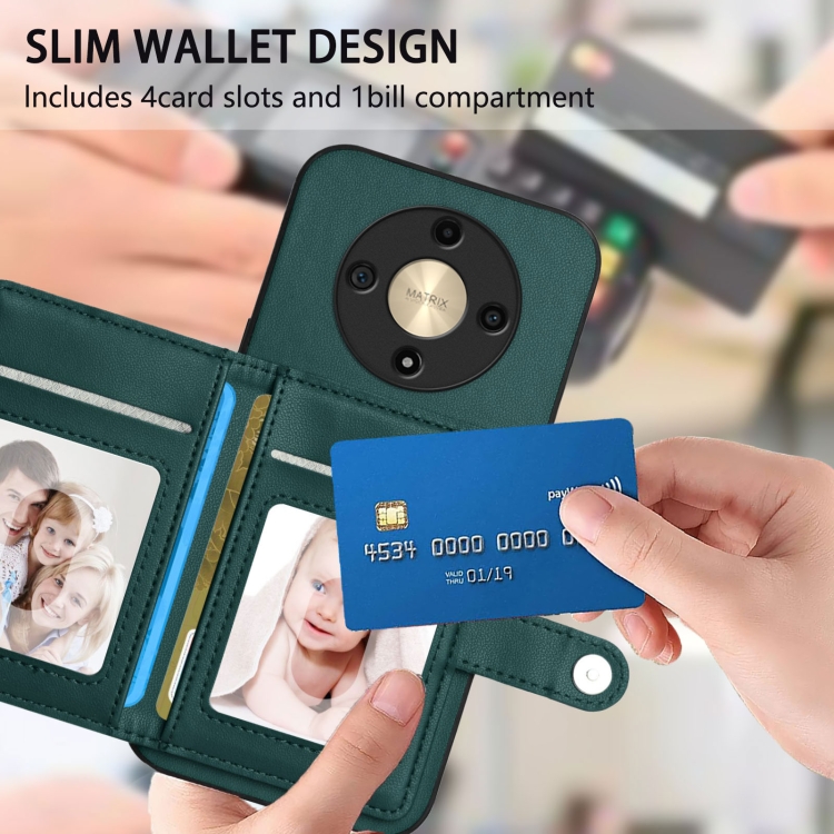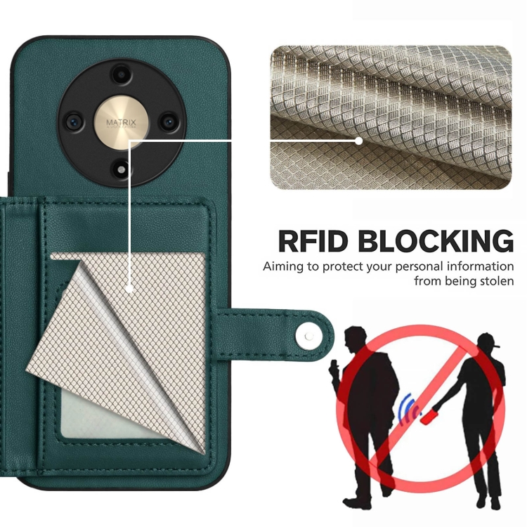 Funda Antirrobo para Honor X9B y Magic6 Lite 5G con Botón y Tarjetero Rfid (Verde)