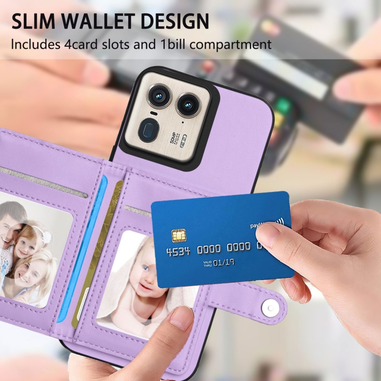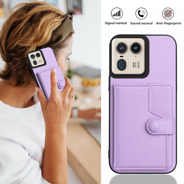 Funda Antirrobo para Motorola Moto X50 Ultra con Botón y Tarjetero RFID (Morado)