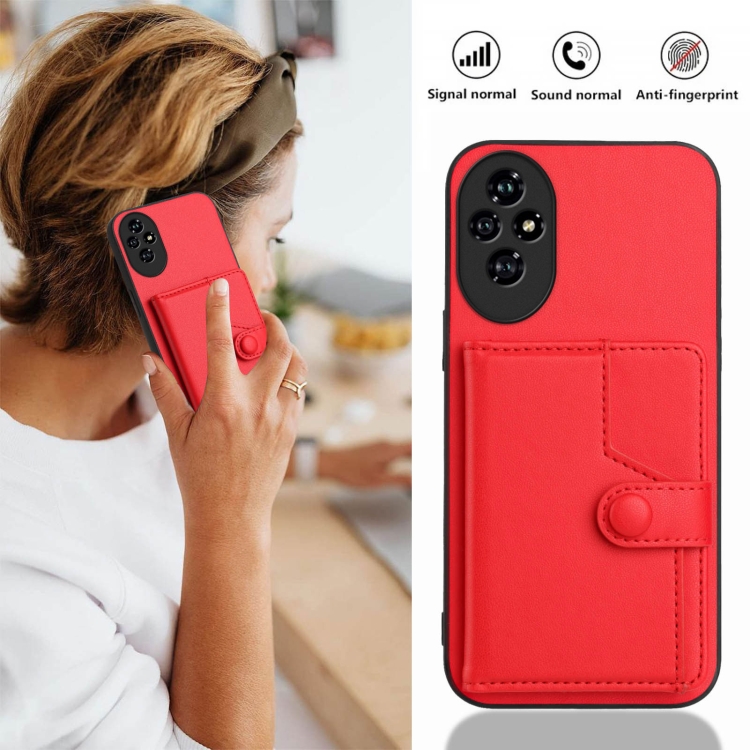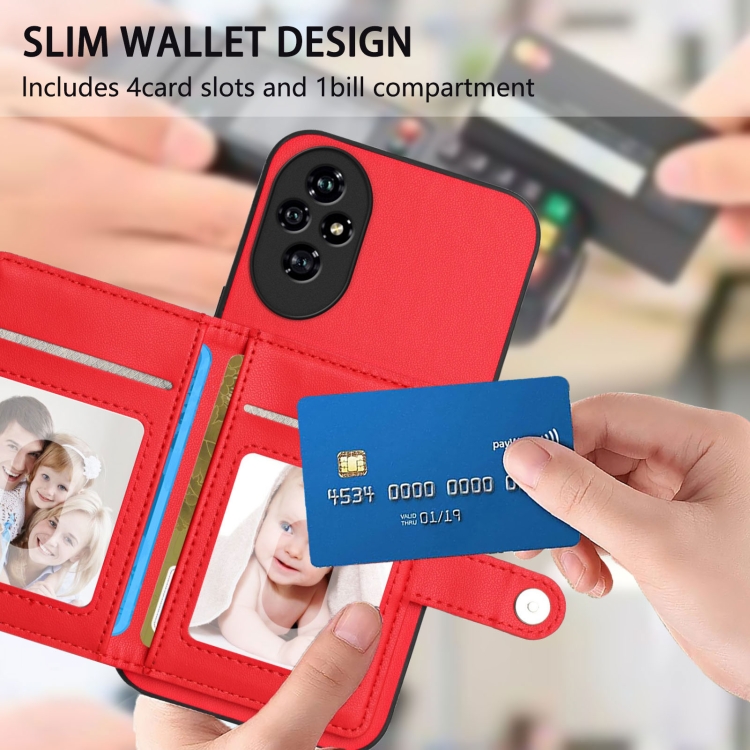 Funda Antirrobo para Honor 200 con RFID y Tarjetero con Botón (Roja)