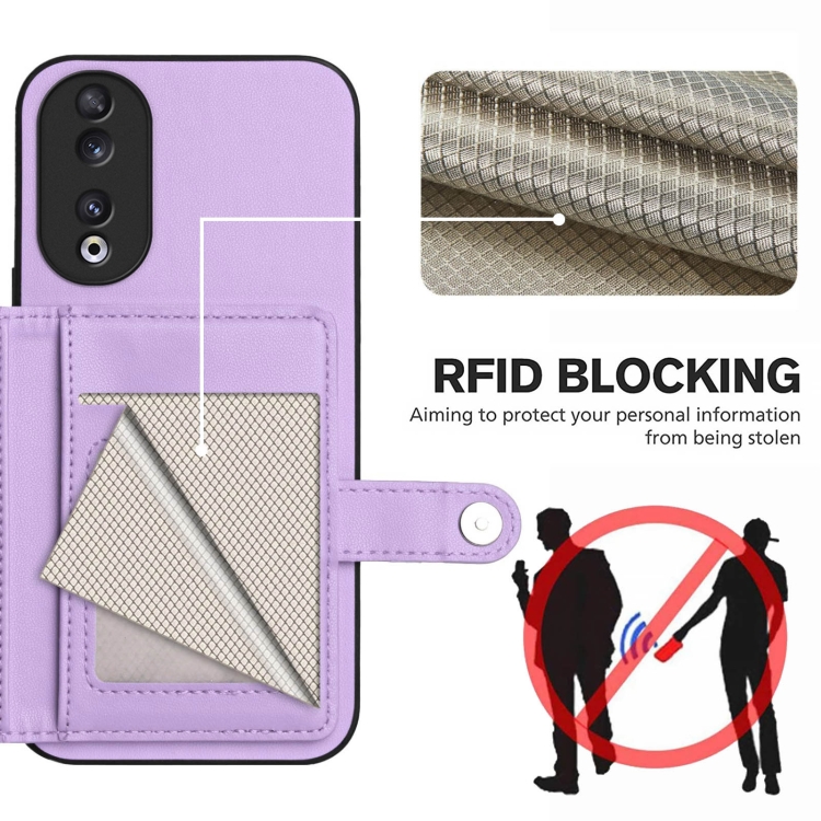 Funda Antirrobo para Honor 90 con RFID y Tarjetero con Botón (Morado)
