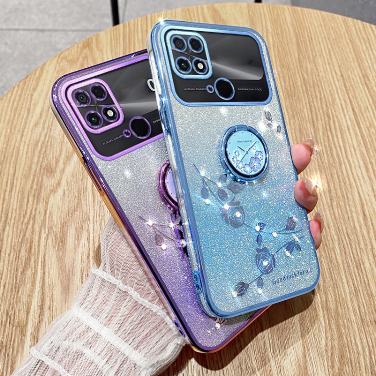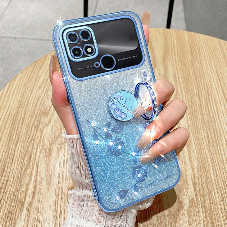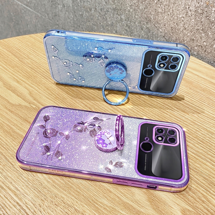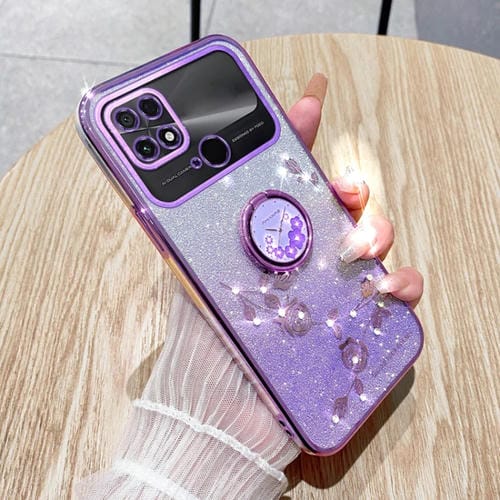 Funda para Teléfono con Anillo de Flores Inmortal con Purpurina Degradada para Xiaomi Poco C40 4G, Todo Incluido (Morado)
