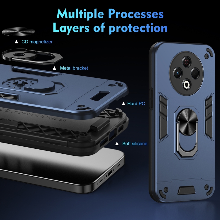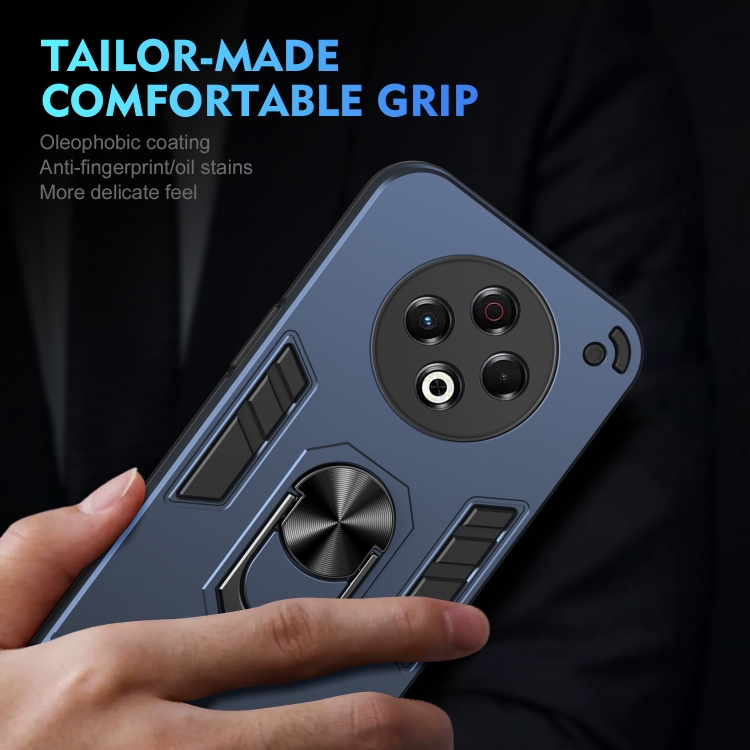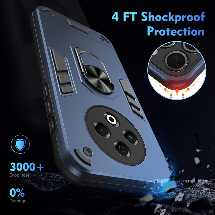 Funda para Teléfono Tecno Spark 30 con Anillo de Metal y Protección Antigolpes (Azul)