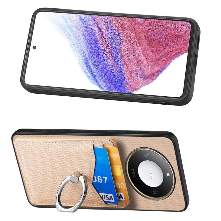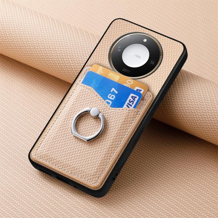Funda para Teléfono Honor X60 con Anillo y Billetera de Fibra de Carbono (Caqui)