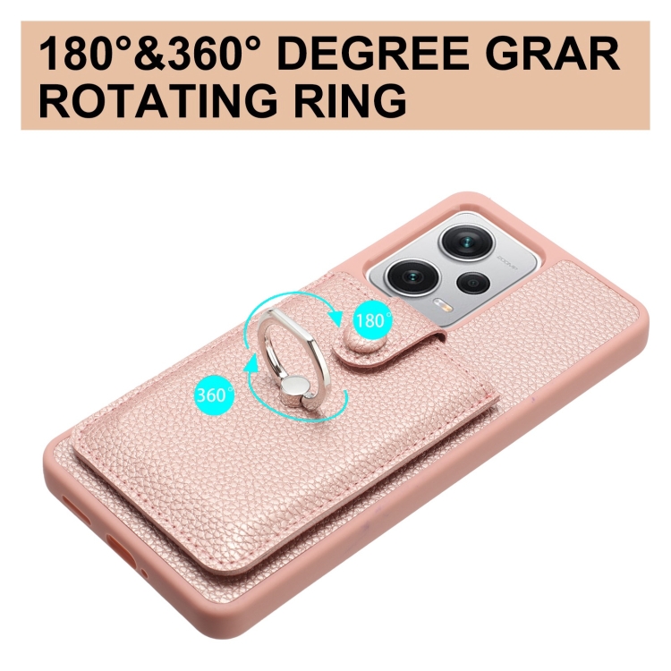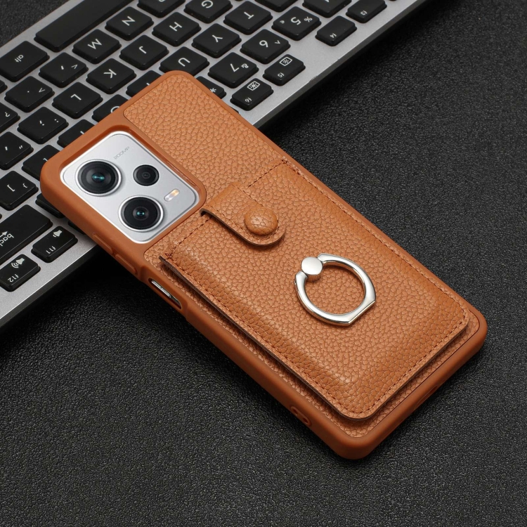 Funda para Teléfono con Anillo y Diseño de Textura de Lichi para Redmi Note 12 Pro 5G (Marrón)
