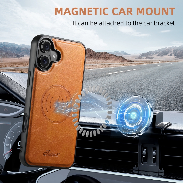 Funda para Teléfono Suteni H17 Oil Eax con Billetera Desmontable Magsafe para iPhone 16 Plus (Caqui)