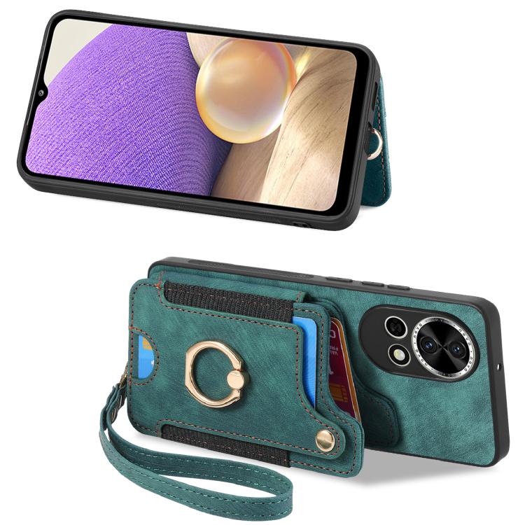 Funda para Huawei Nova 13 con Billetera MultiTarjeta, Diseño Retro, Sensación de Piel y Anillo (Verde)