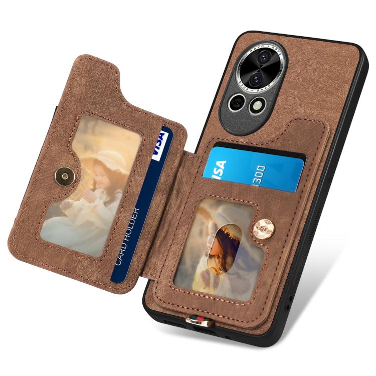 Funda para Teléfono Huawei Nova 10 Pro con Billetera MultiTarjeta Piel Sintética y Anillo (Marrón)