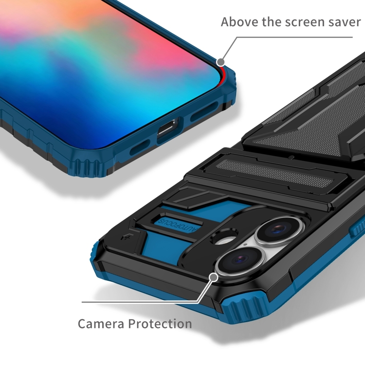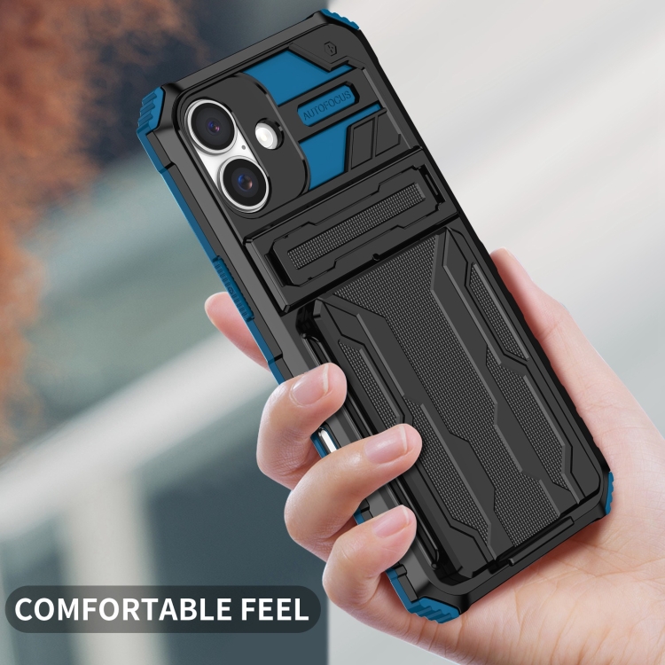 Funda para Teléfono iPhone 16 Plus con Billetera y Soporte para Tarjetas (Azul)