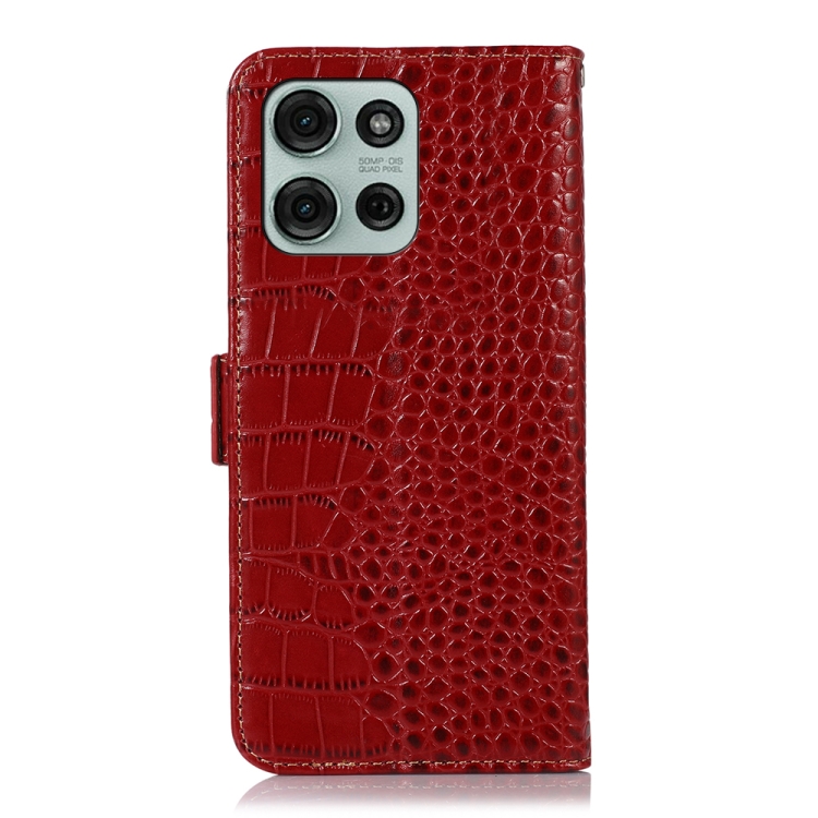 Funda para Motorola Moto G75 5G con Capa Superior de Piel de Vaca y Cocodrilo (Rojo)