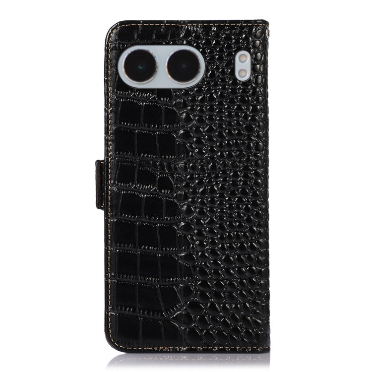 Funda para Teléfono OnePlus Nord 4 con Capa Superior de Piel de Vaca y Cocodrilo (Negra)