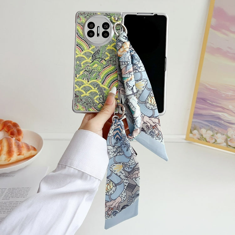 Funda para Teléfono Huawei Mate X3/X5 con Cobertura Total Bordado Nubes Bufanda Pulsera (Verde)