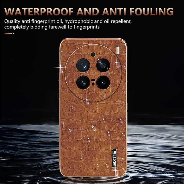 Funda para Teléfono con Cobertura Total con Textura de Cocodrilo y Marco Galvanizado Azns para Vivo X200 Pro (Azul)