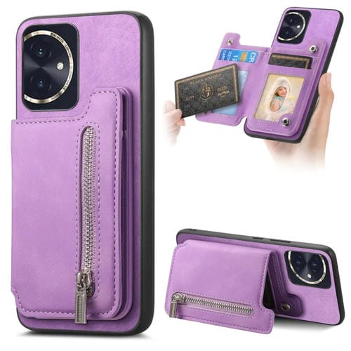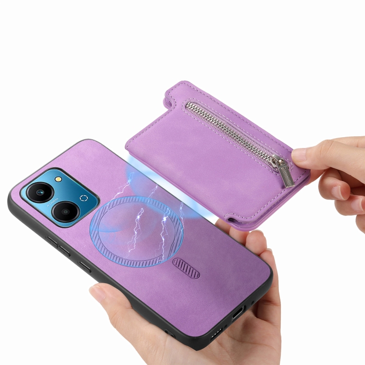 Funda para Teléfono Honor 100 con Cremallera Magsafe Retro, Tarjetero, Cartera (Morado)