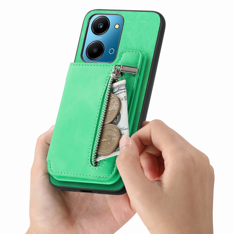 Funda para Teléfono Honor Play 50 Plus 5G con Cremallera Magsafe, Tipo Billetera y Tarjetero (Verde)