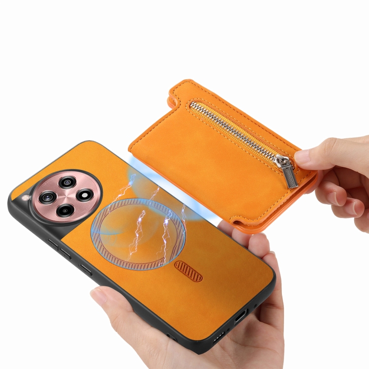 Funda para Teléfono OnePlus Ace 3 5G/12R 5G con Cremallera Magsafe Retro (Amarilla)