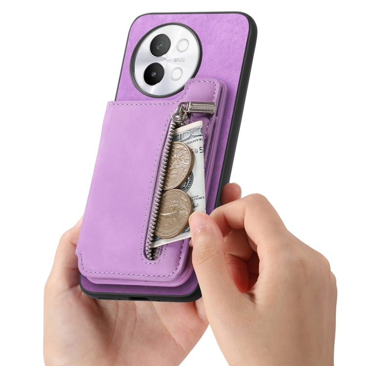 Funda para Teléfono con Cremallera Magsafe Retro para Vivo Iqoo 12 5G (Morado)