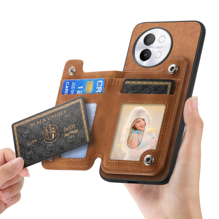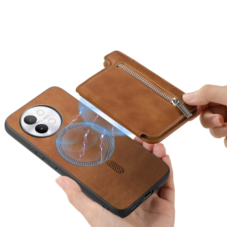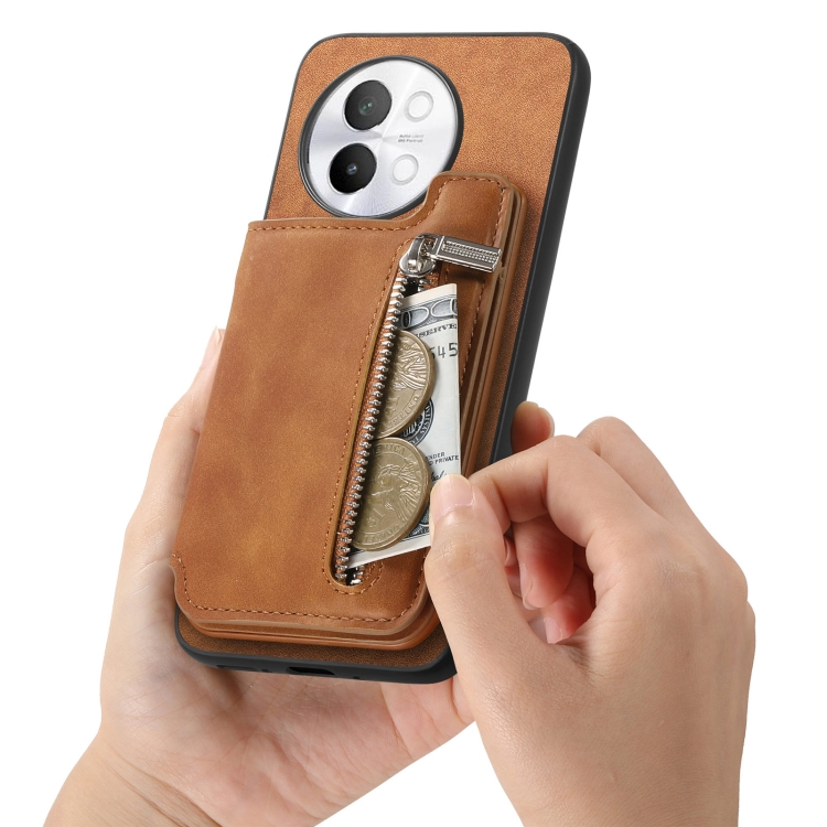 Funda para Teléfono con Cremallera Magsafe Retro para Vivo Iqoo Neo9/Neo9 Pro 5G (Marrón)