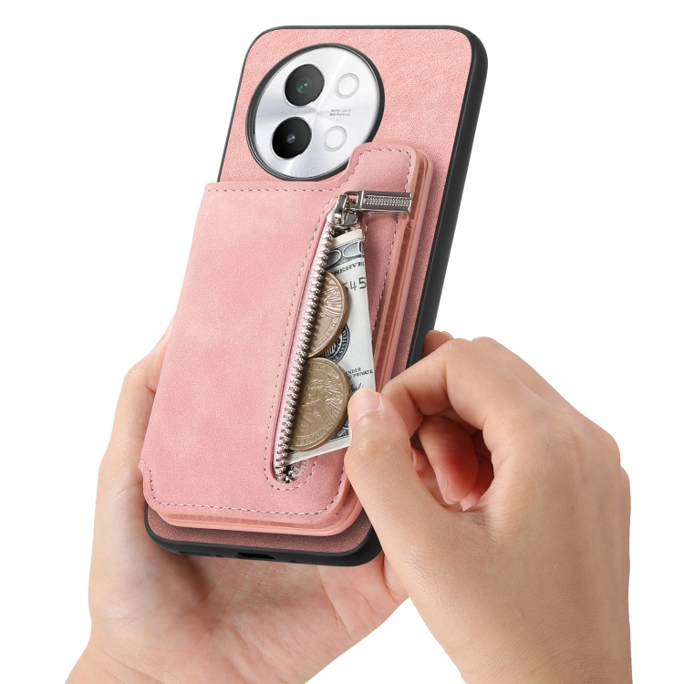 Funda para Teléfono con Cremallera Magsafe Retro para Vivo Iqoo Neo9/Neo9 Pro 5G (Rosa)