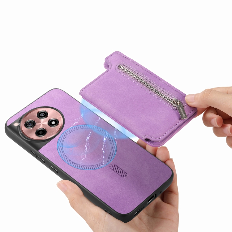 Funda para Teléfono OnePlus Nord Ce4/Ace 3V con Cremallera Retro Magsafe (Morado)