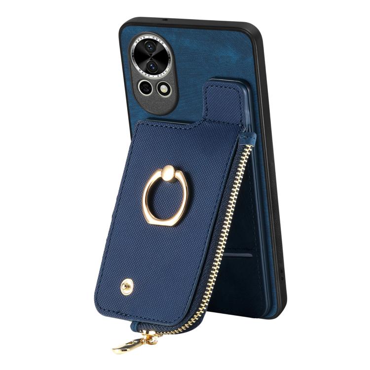 Funda para Teléfono Huawei Nova 12 con Cremallera Vertical y Anillo de Cuero Cruzado (Azul)