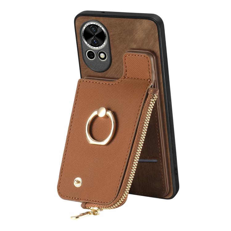 Funda para Teléfono Huawei Nova 12 con Cremallera Vertical y Anillo de Cuero Cruzado (Marrón)