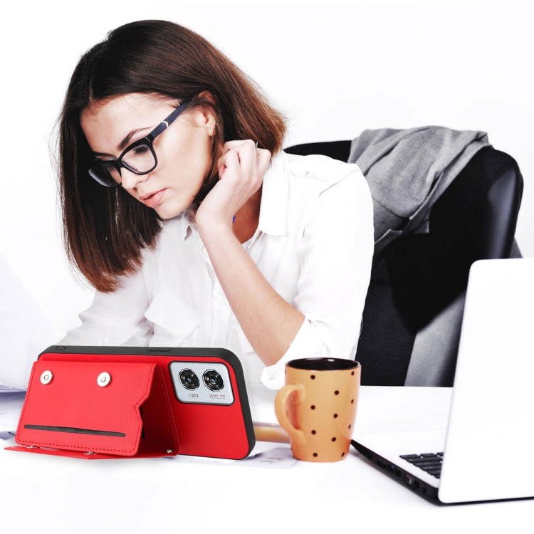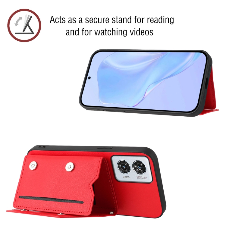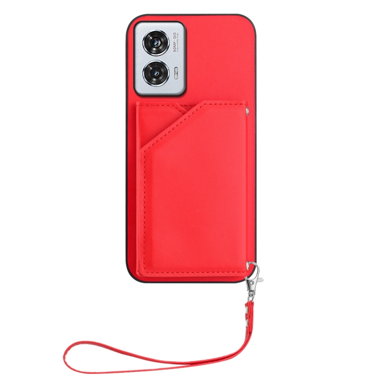 Funda para Motorola Edge 50 Fusion con 4 Ranuras para Tarjetas y Correa para Muñeca (Rojo)