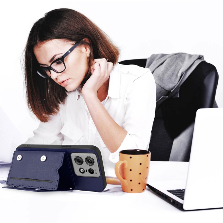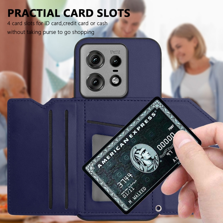 Funda para Motorola Edge 50 Pro Skin Feel con 4 Ranuras para Tarjetas y Correa (Azul)