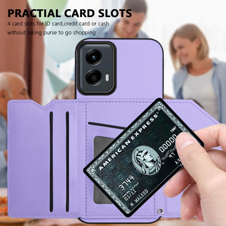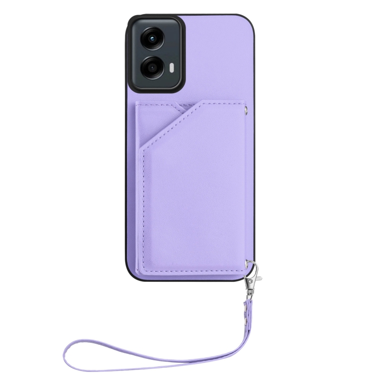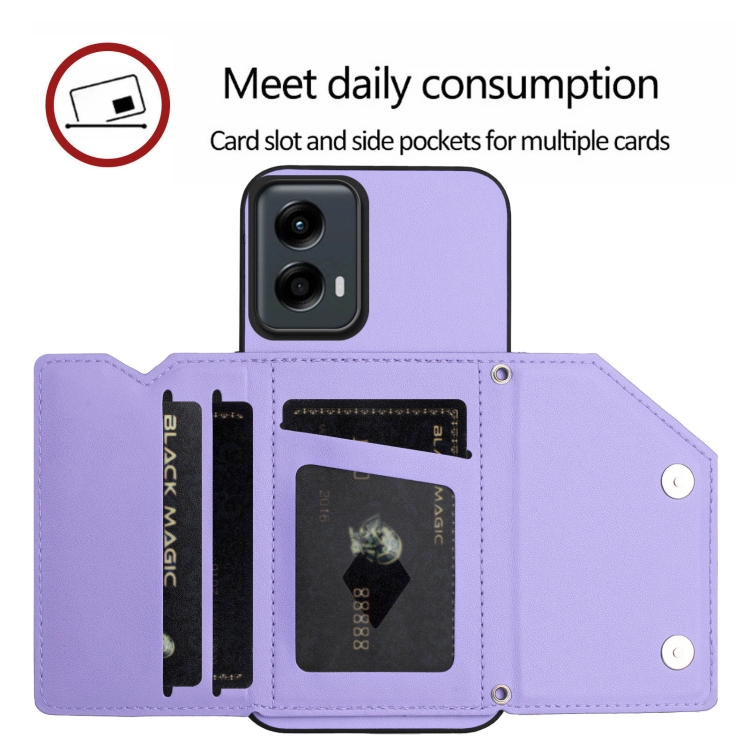 Funda para Motorola Moto G 5G 2024 con 4 Ranuras para Tarjetas y Correa (Morado)