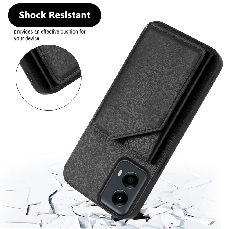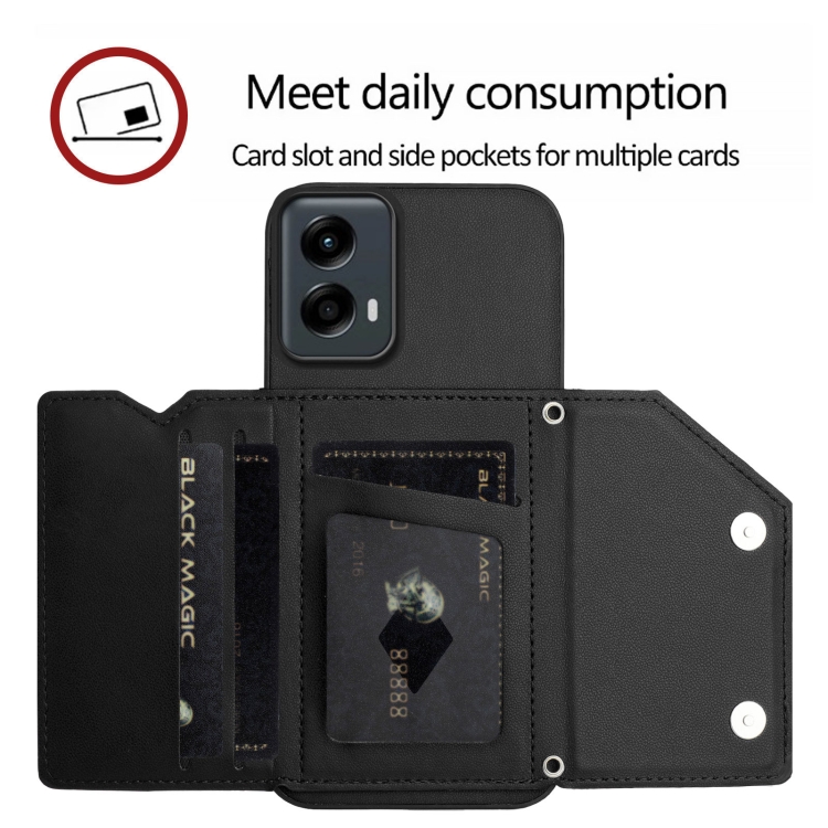 Funda para Motorola Moto G 5G 2024 con 4 Ranuras para Tarjetas y Correa para Muñeca (Negro)