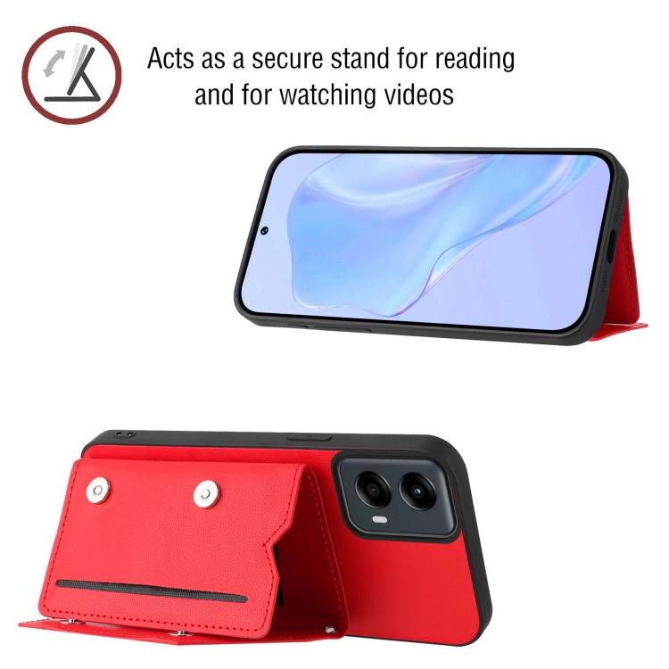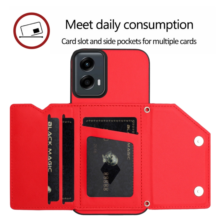 Funda para Motorola Moto G 5G (2024) con 4 Ranuras para Tarjetas y Correa para Muñeca (Rojo)