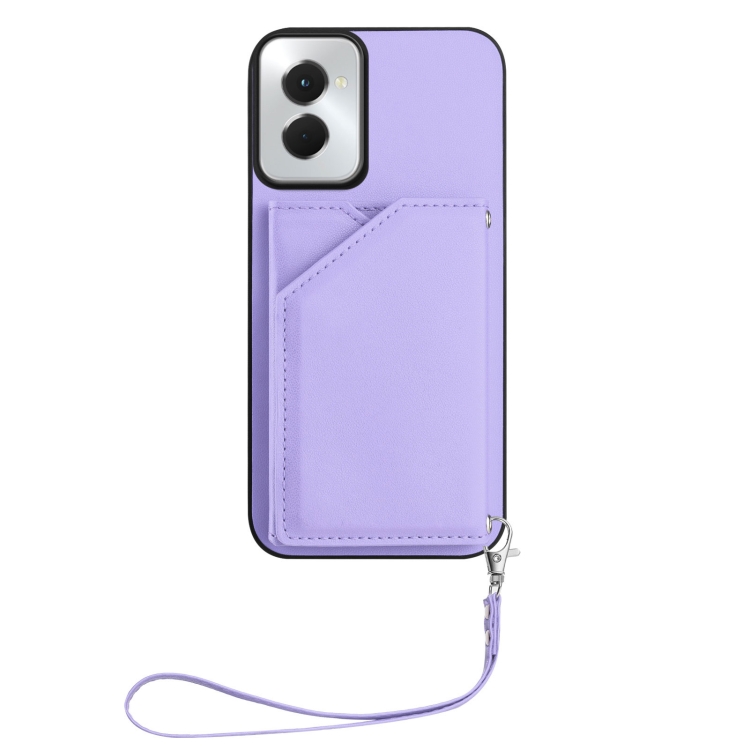 Funda para Motorola Moto G Play 2024 5G con 4 Ranuras para Tarjetas y Correa (Morado)