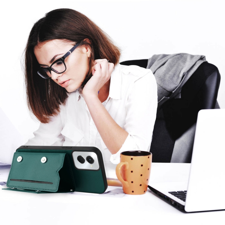 Funda para Teléfono Motorola Moto G Play 2024 5G Skin Feel con 4 Ranuras y Correa (Verde)