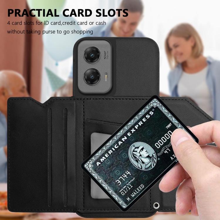 Funda para Motorola Moto G Stylus 5G (2024) con 4 Ranuras para Tarjetas y Correa (Negro)