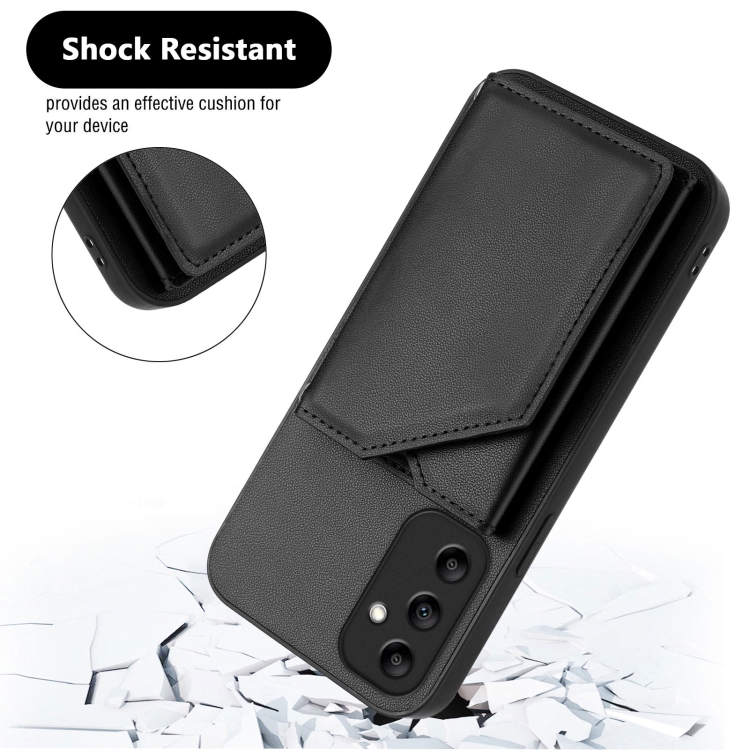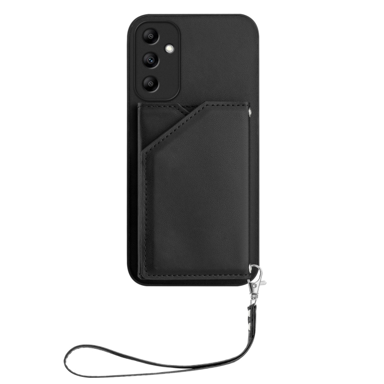 Funda para Teléfono Samsung Galaxy A14 5G Skin Feel con 4 Ranuras para Tarjetas y Correa para Muñeca (Negro)