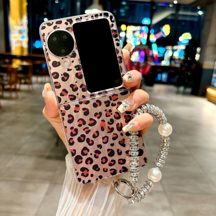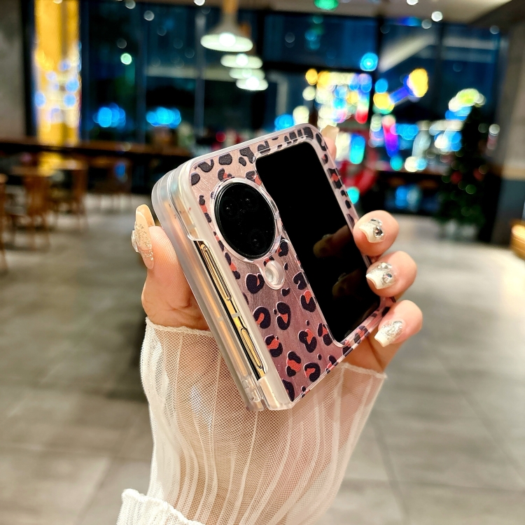 Funda para Teléfono con Diseño de Leopardo y Plumas con Tapa Integrada para Oppo Find N3 (Marrón)