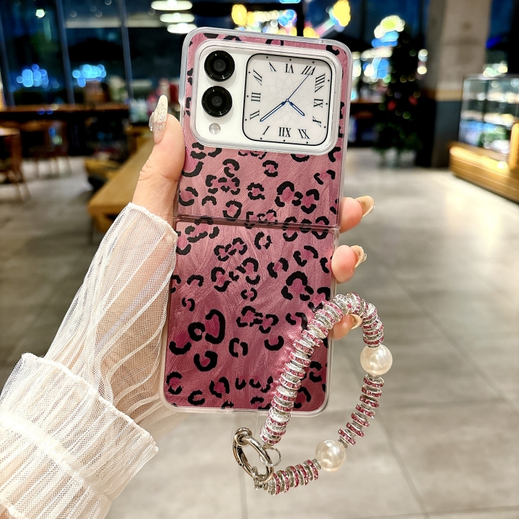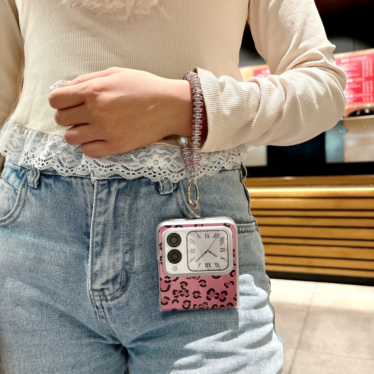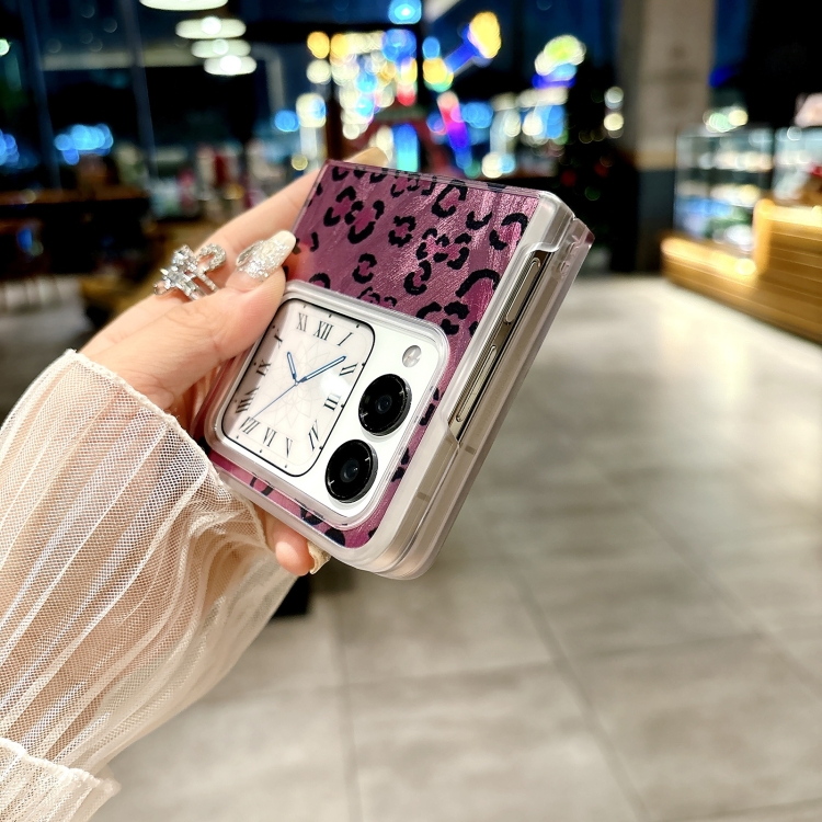 Funda para Teléfono Huawei Nova Flip con Diseño Leopardo y Plumas Integrada con Pulsera (Morado)