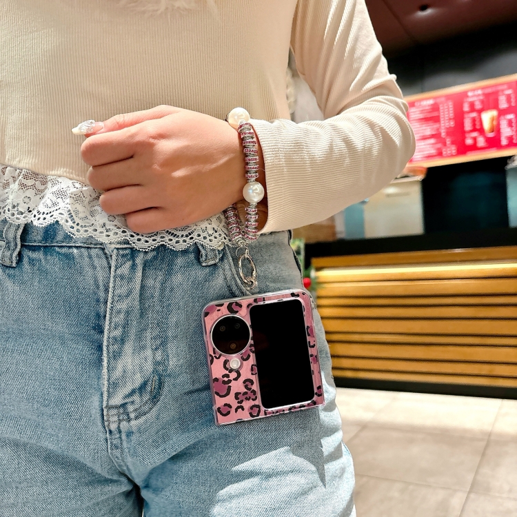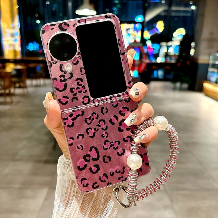 Funda para Teléfono con Diseño de Leopardo y Plumas para Oppo Find N3 Flip, con Pulsera (Morado)