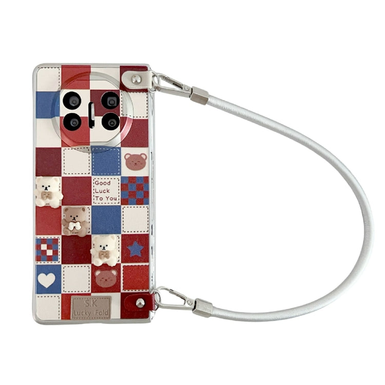 Funda para Teléfono Huawei Mate X5 con Diseño de Osito Enrejado, Cobertura Total y Correa (Plateada)